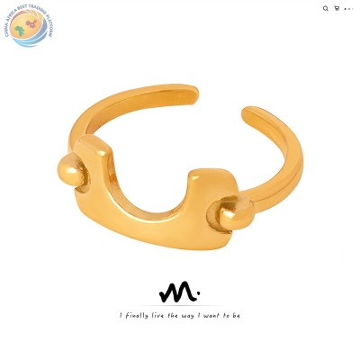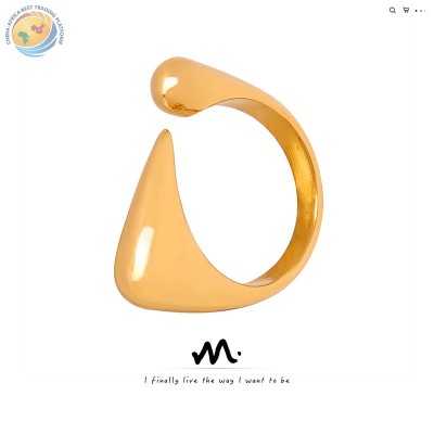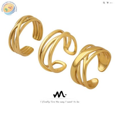 欧美新款小众设计简约个性几何钛钢镀金开口戒指