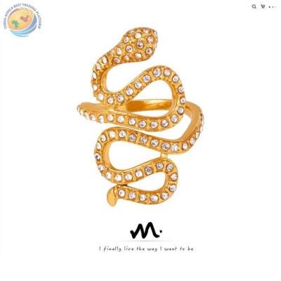 热销蛇形镶钻创意夸张个性小众钛钢指环女戒指