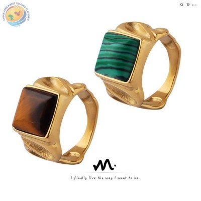 复古个性叠戴戒指天然石虎眼石镶嵌钛钢指环
