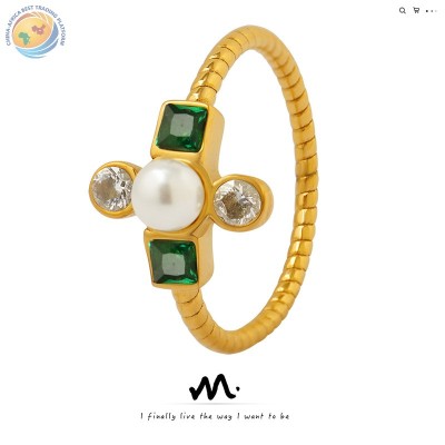 法式轻奢ins水钻胶珠戒指设计感钛钢镀金指环