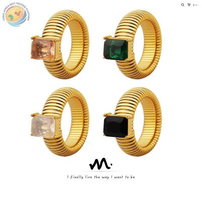 时尚小众设计感几何晶石镶钻螺纹戒指