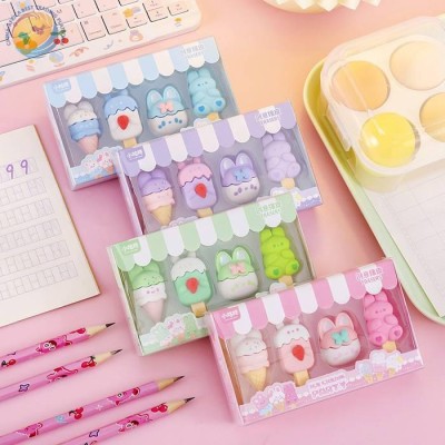 Cute cartoon girl heart pet ice cream box rubber set students June 1 final gift