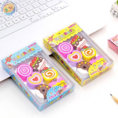 Creative cute box Love doughnut cake box eraser eraser set