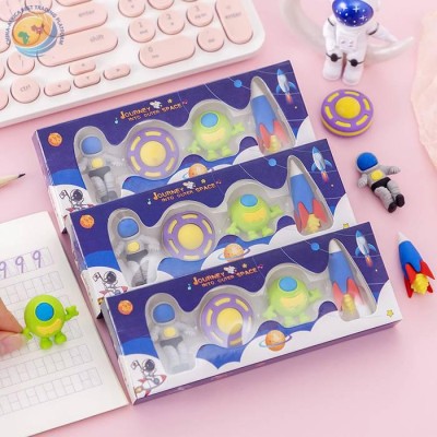 Creative aerospace Space rocket flying saucer eraser set student stationery June 1 gift