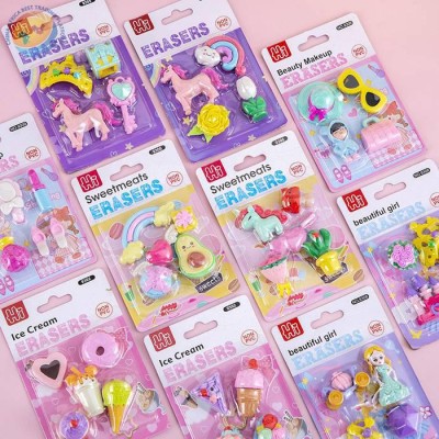 Children\'s creative 3D three-dimensional animal food space rubber stationery set June 1 end Christmas gift