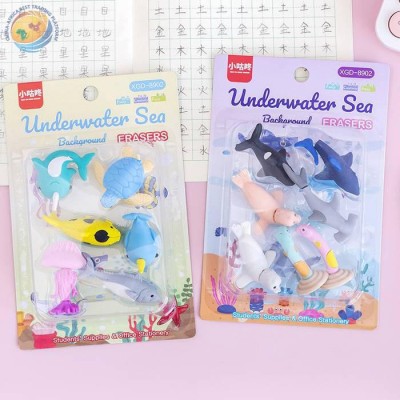 海狮鲨鱼海洋动物组合橡皮擦套装学生期末六一圣诞礼物