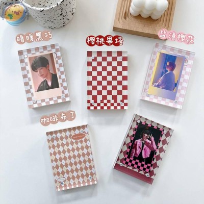 韩国ins亚克力菱格复古拍立得相框 3寸照片追星咕卡展示桌面摆件