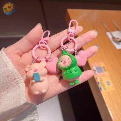 Cute three-dimensional pink pig keychain girl student bag hanging accessories
