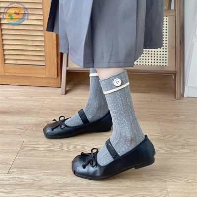 Japanese new jk flanged button girl Mary Jane socks contrast color tube socks