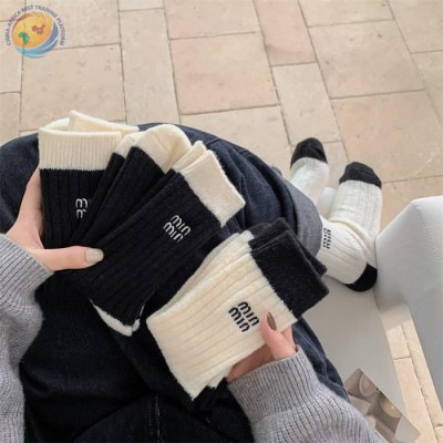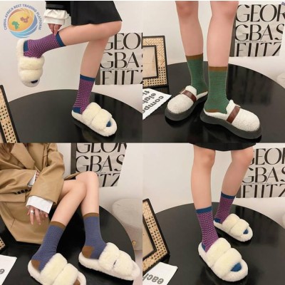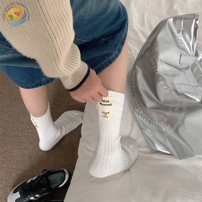 \"Lazy atmosphere\" autumn and winter socks white cloth label English female calf pile socks