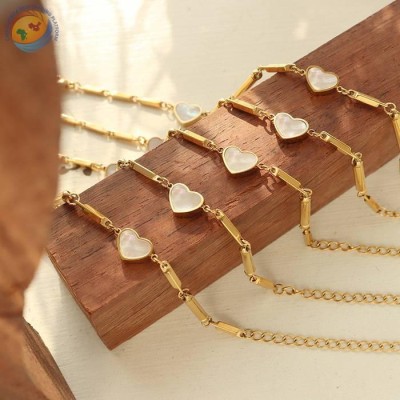 Fashion cool ins style Korean bracelet white sea shell inlaid heart pendant