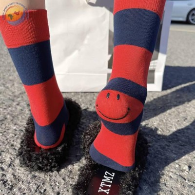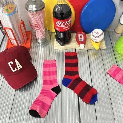 Japanese tide socks Hirata red color matching stripes men\'s and women\'s mid-tube socks