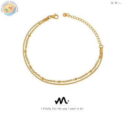 Casual style light luxury temperament double chain titanium steel plated 18-karat gold bracelet
