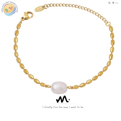 Korean fresh water pearl spliced rice bead temperament metal chain bracelet