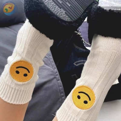 Double stitch smiley face embroidery solid color mid-tube socks Yellow smiley face fashion socks