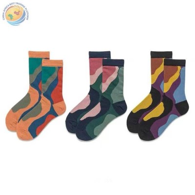 Hipster socks striped color contrast retro niche men\'s and women\'s cotton mid-tube socks