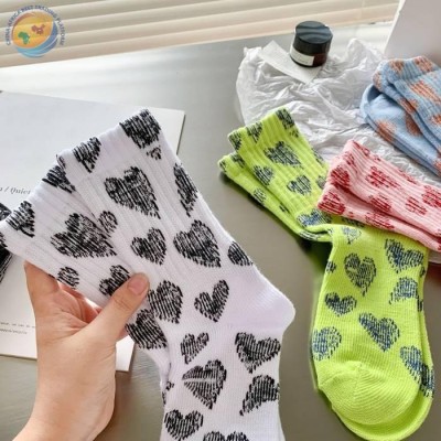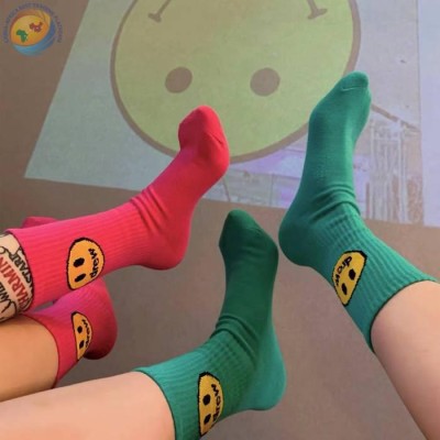 Hipster smiley face socks The same blue pink cotton midtube socks as Bieber