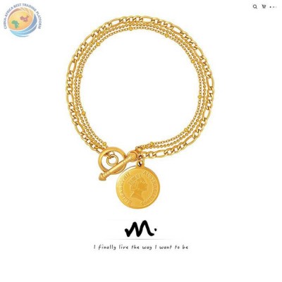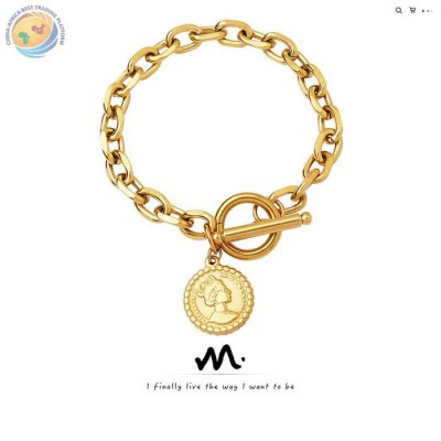 High-grade sense with retro niche men titanium steel circular pendant OT buckle bracelet