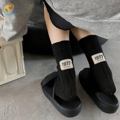 Fashion double needle thick thread 1977 cloth label digital socks pure cotton retro sports socks for men and women