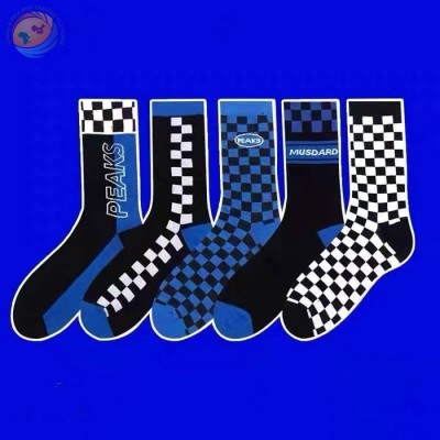 Trendy new Klein blue checkerboard socks pure cotton socks