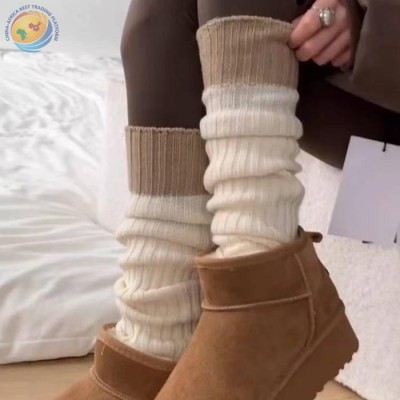 Knitted socks spring and autumn wool color patchwork leg socks calf socks