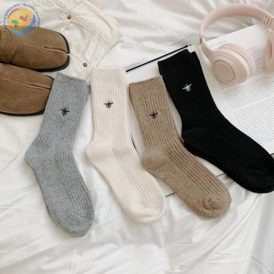 Japanese and Korean honey bee embroidery wool rabbit hair autumn and winter socks woman