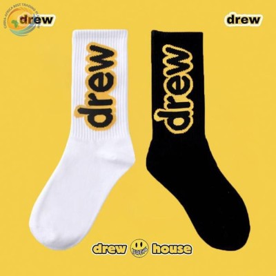 23SS fashion brand black and white letter socks Graffiti smiley face with Crocs trend sports men and women pure cotton socks