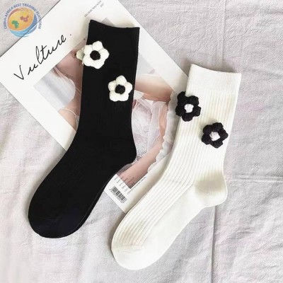 后跟刺绣金色笑脸布标袜子韩国ins小众外穿