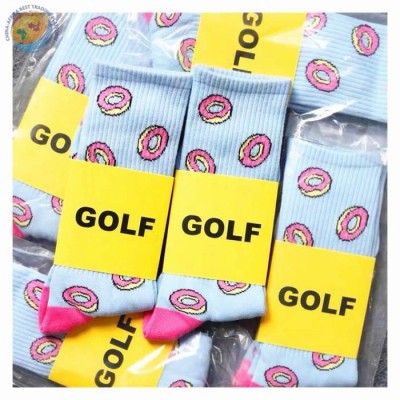 潮牌golf粉蓝色袜蛋糕满印甜甜圈运动袜