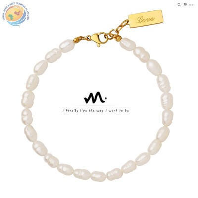 法式英文字母方牌吊坠中古风气质淡水珍珠手链