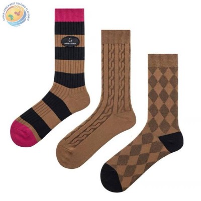 潮流复古女袜拼色双针中筒袜咖啡色菱格