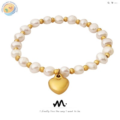 淡水珍珠拼接钢珠手链女创意设计桃心吊坠