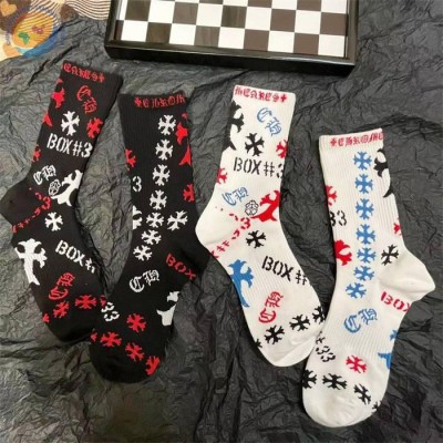 欧货潮牌男女中筒袜十字架梵文字母运动长袜