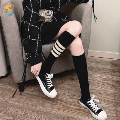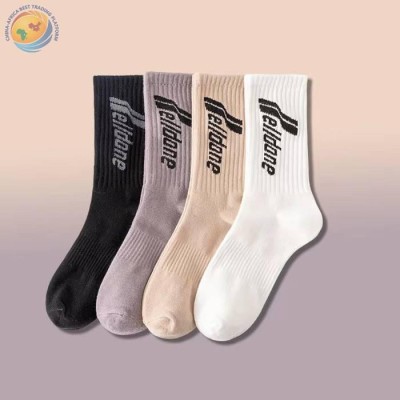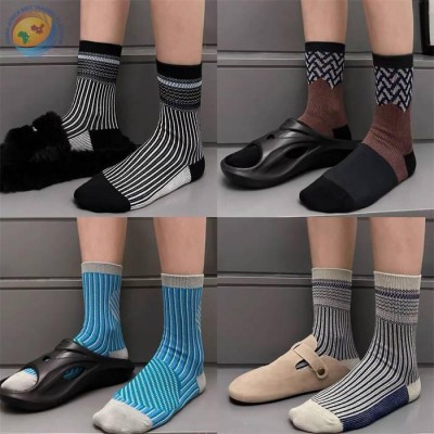 Reverse vertical cotton mid-tube socks men\'s and women\'s fashion sports striped pile socks