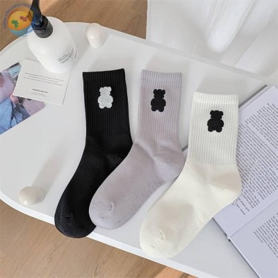 Caton Bear high elastic black white grey cotton mid-tube socks solid color sports socks