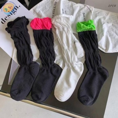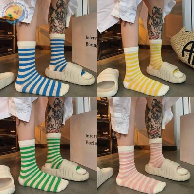 Spring/summer thin striped socks candy-colored dopamine midtube socks for women