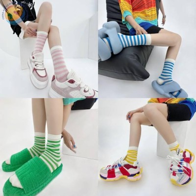 Breathable candy striped socks Instagram chic spring/summer hollow thin