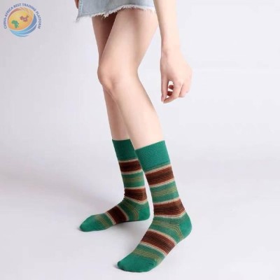 Green brown stripes contrast color women retro dark green mid-tube socks spring and autumn pile socks