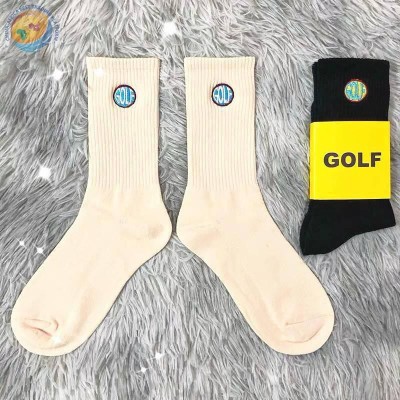 Trendy golf Circle Embroidery Hip Hop Skate cotton midtube socks