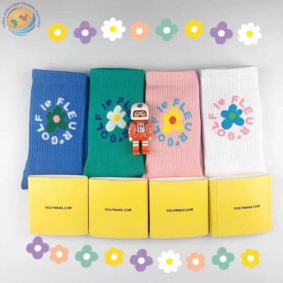 Fashion brand flower socks Fashion street skateboarding couples cotton mid-tube socks