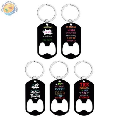 Color print key chain stock stainless steel bottle opener wine cup metal key chain