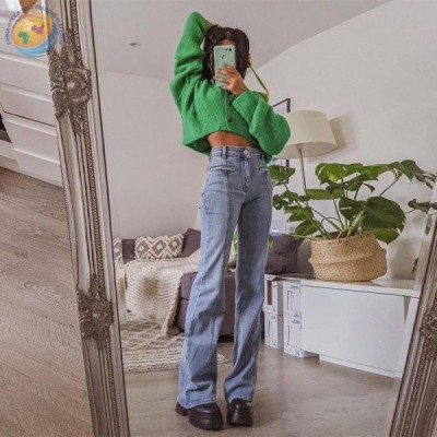 Straight leg high-waisted skinny jeans women Instagram bag hip five star trend all match casual pants