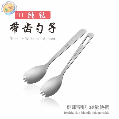 纯钛带齿勺子刀叉勺筷家用便携套装野营野炊餐具抑菌多用
