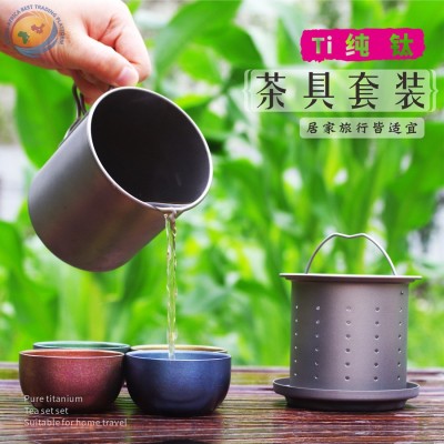 纯钛马克杯泡茶器带盖过滤茶漏茶水分离家用茶道折叠钛杯旅行茶具