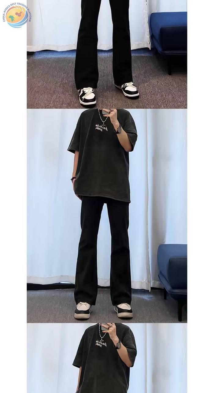 Men's Casual pants高街弹力牛仔裤男秋季美式时尚潮流长裤子