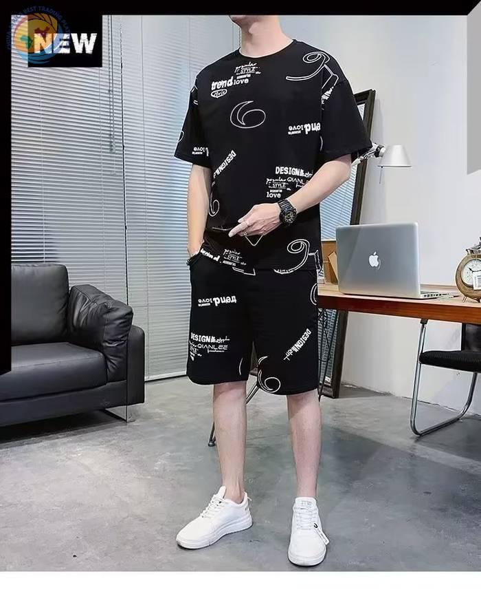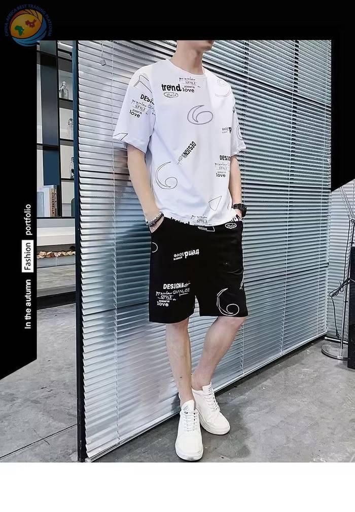 潮牌大码男装薄款衣服短裤帅气夏装短袖恤男士夏季宽松运动套装