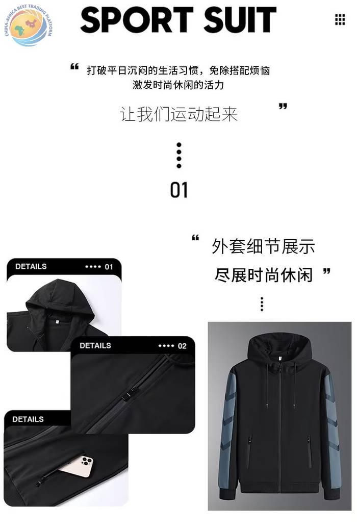 Men's Suit 休闲时尚运动套装男连帽开衫大码跑步棉运动服两件套