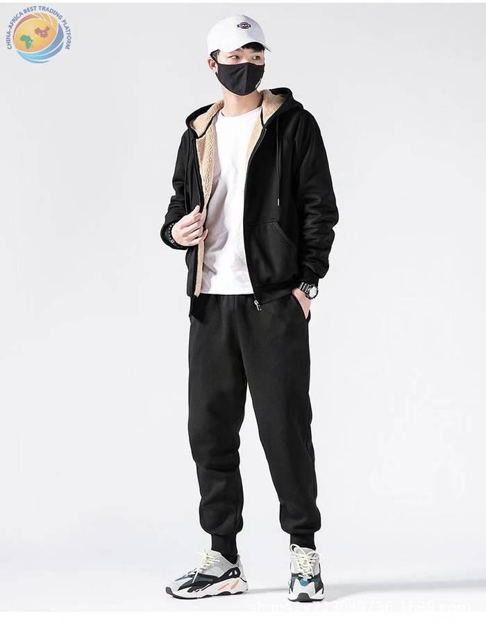 Men's Suit套装男士秋冬季保暖休闲两件套宽松型连帽拉链运动开衫
