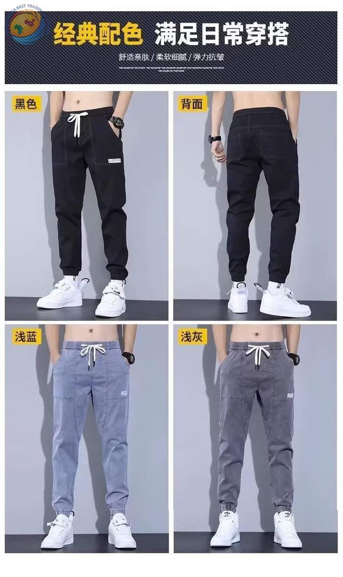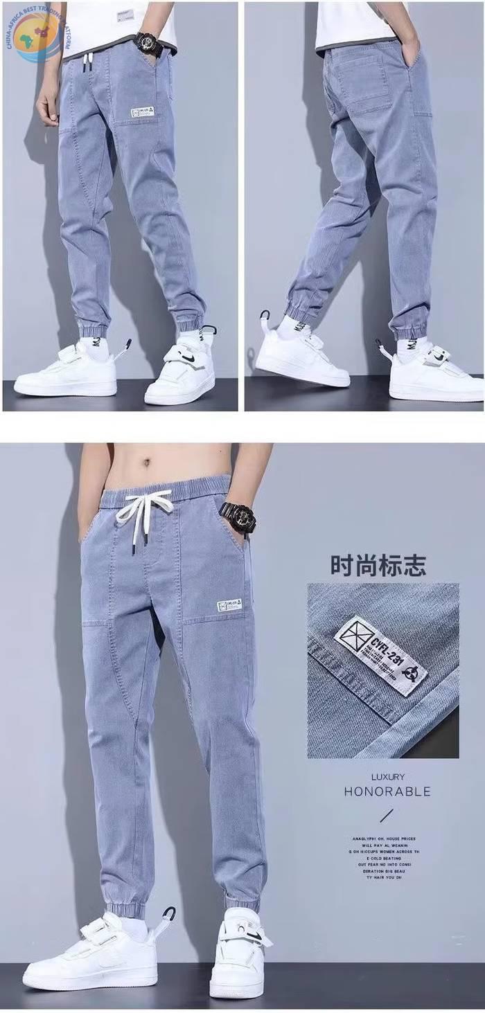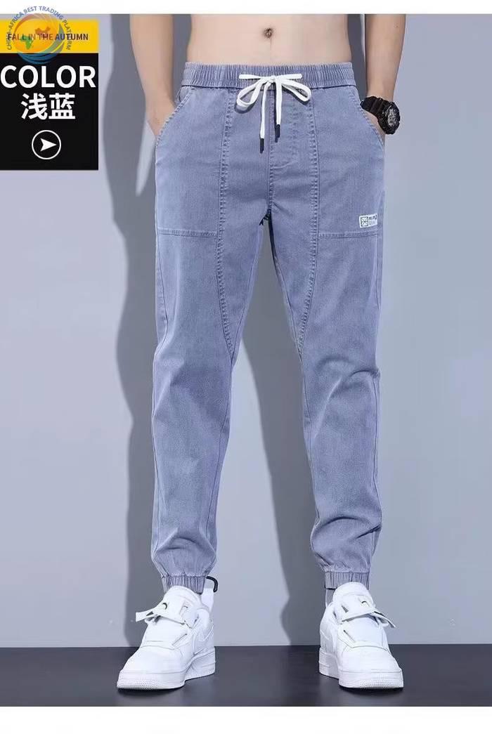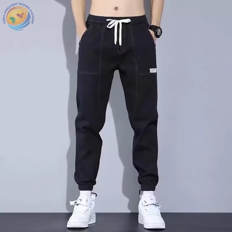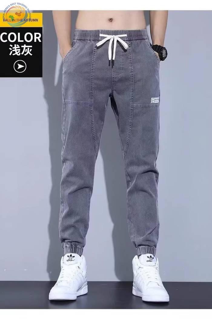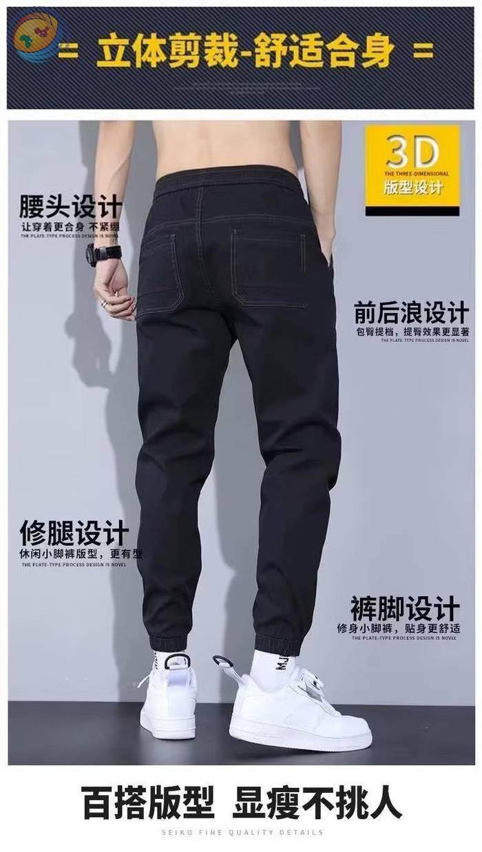 春秋新款工装牛仔裤男士潮牌痞帅宽松百搭束脚抽绳哈伦裤休闲长裤