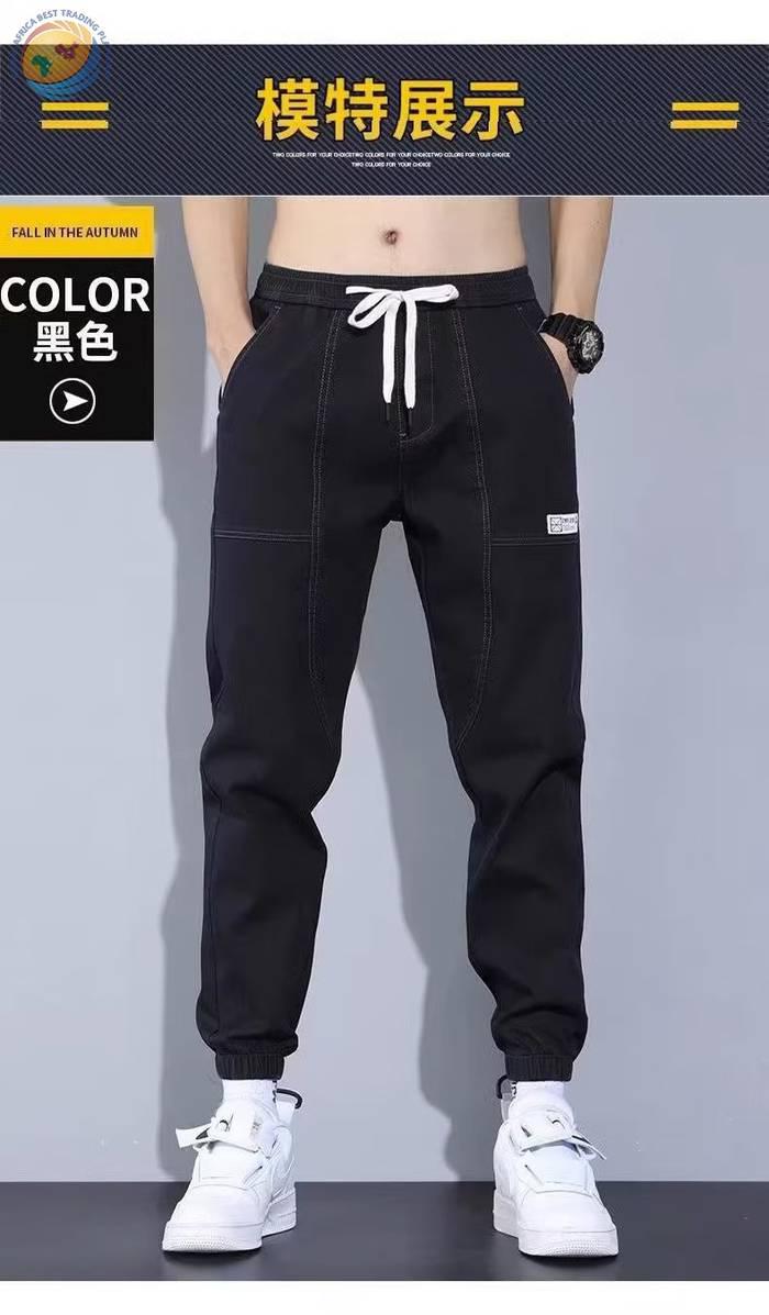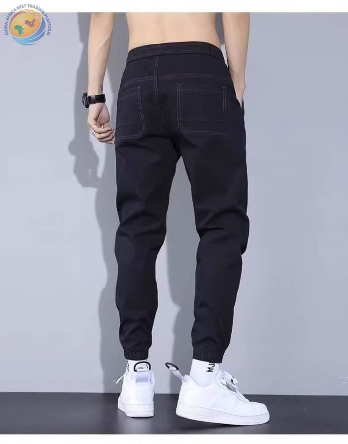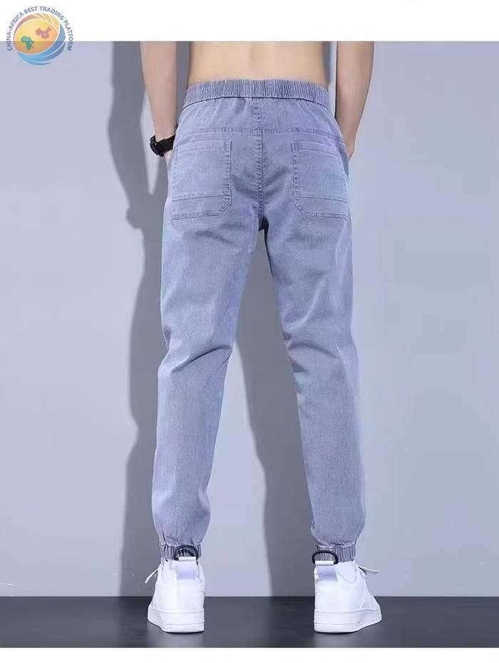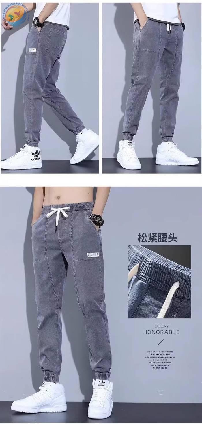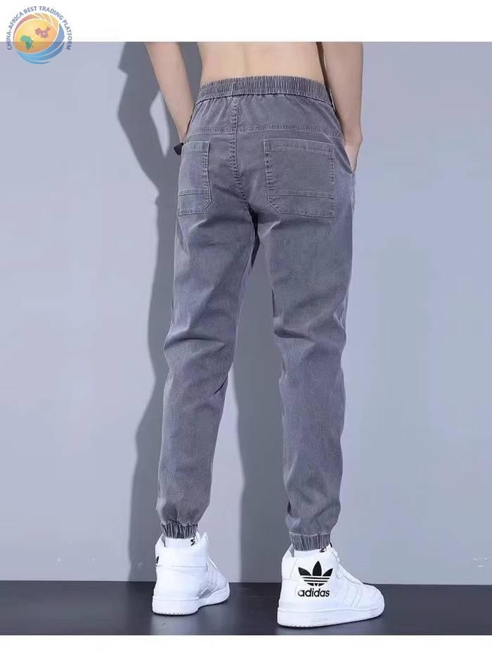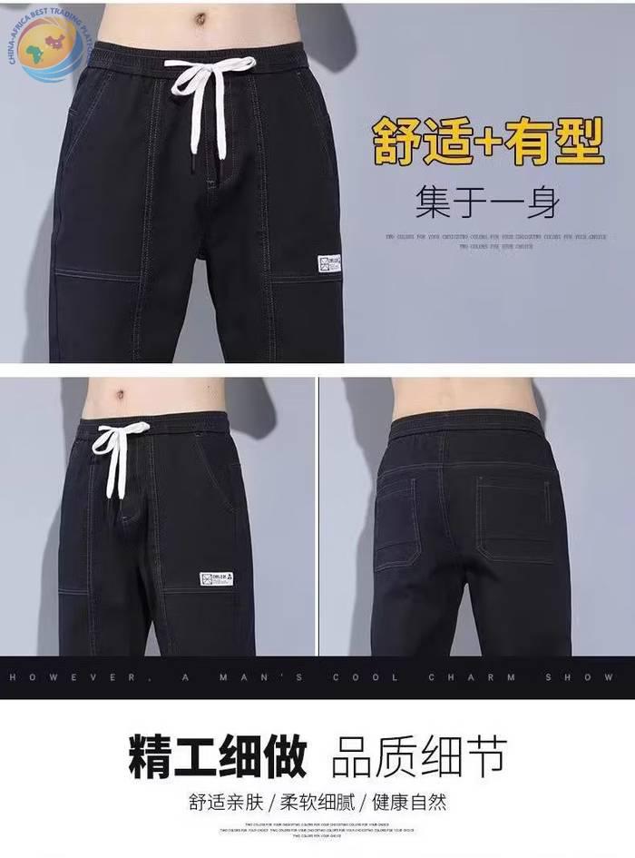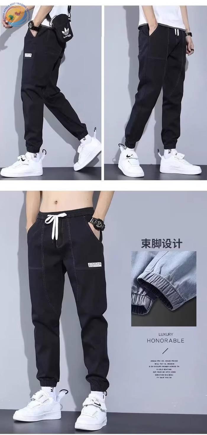 春秋新款工装牛仔裤男士潮牌痞帅宽松百搭束脚抽绳哈伦裤休闲长裤